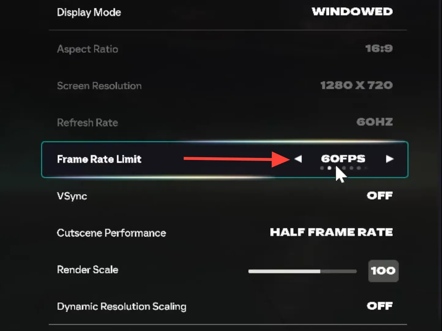 Step 1: Open the in‑game video/display settings and set the frame rate limit to 60 FPS. This cap avoids a timing bug that causes the game to stop reading full controller input during online play.