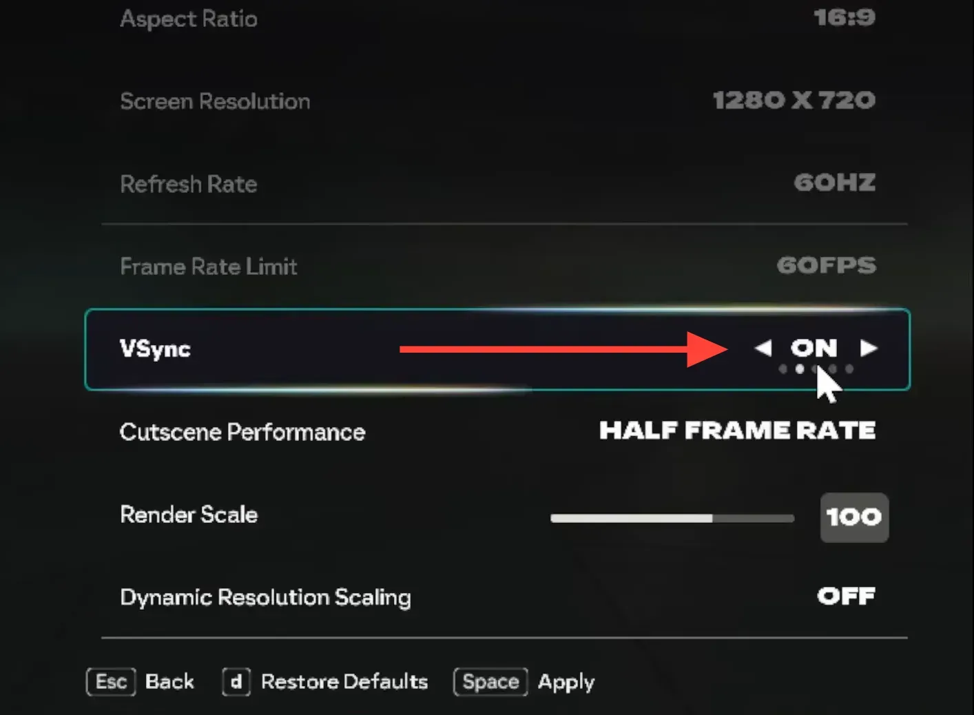 Step 2: Turn on VSync in the same settings menu. VSync keeps the game’s frames in sync with your monitor, which stabilizes input detection in online matches.