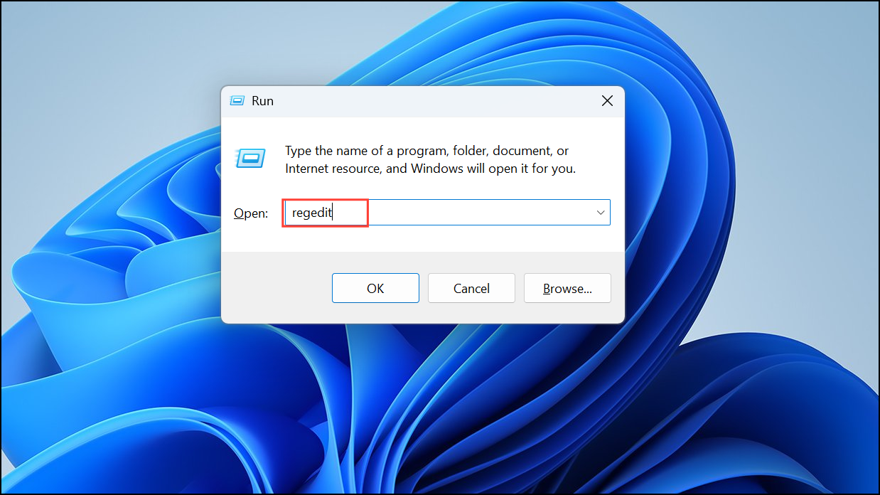 Step 1: Press Windows + R, type regedit, and press Enter to open the Registry Editor. When prompted by User Account Control, confirm to proceed.
