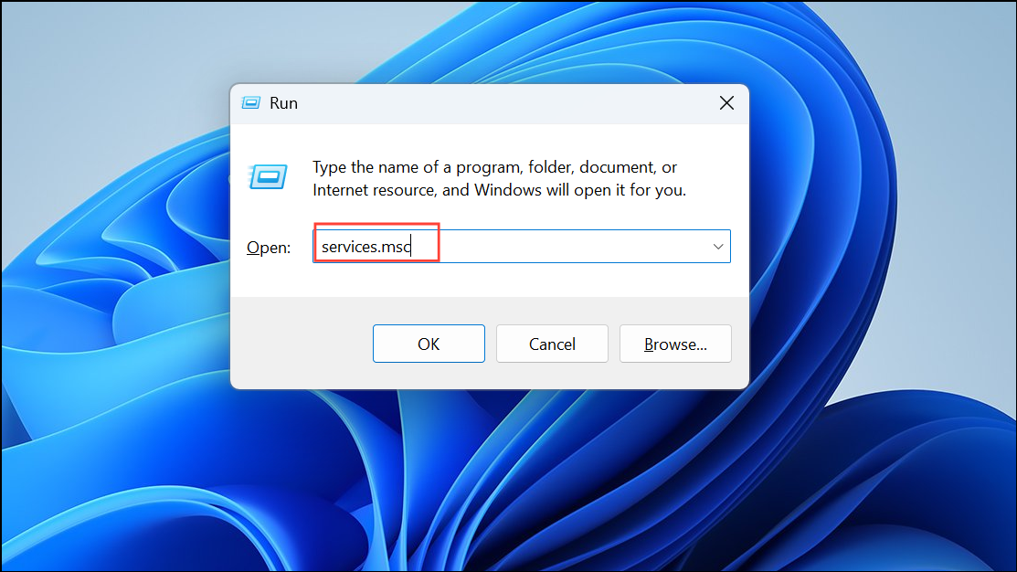 Step 1: Press Windows + R, type services.msc, and press Enter to open the Services manager.