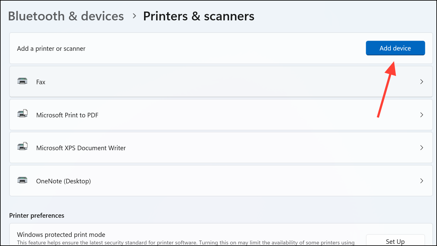 Step 3: Click the Add device button at the top right. If your printer is not listed, click The printer that I want isn't listed.