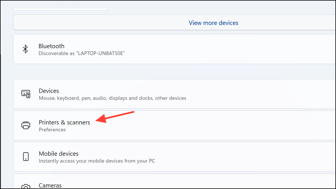 Step 2: Click Printers and scanners on the Bluetooth and Devices page.