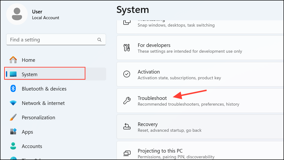 Step 1: Press Windows + I to open Settings, then select System and navigate to Troubleshoot.