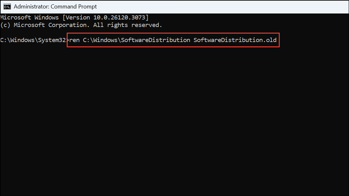 ren C:\Windows\SoftwareDistribution SoftwareDistribution.old