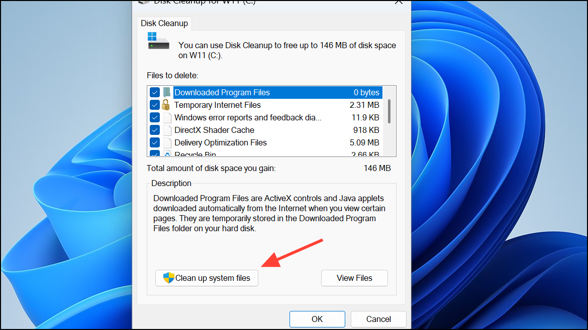 Step 3: Click OK, then confirm by clicking Delete Files. For deeper cleaning, use the Clean up system files option within Disk Clean-up.