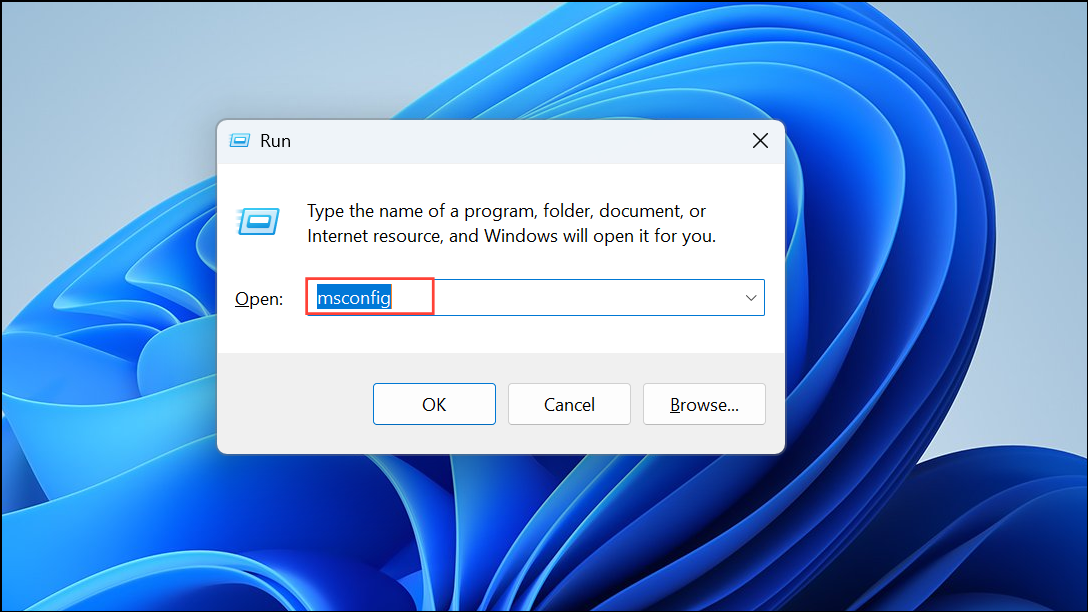 Step 1: Press Windows + R, type msconfig, and press Enter to open System Configuration.