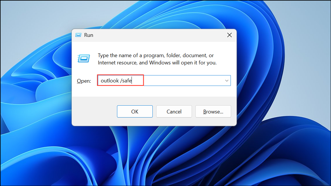 Step 1: Close Outlook completely. Press Windows Key + R to open the Run dialog, type outlook /safe, and press Enter. Outlook will launch in Safe Mode, indicated in the title bar.