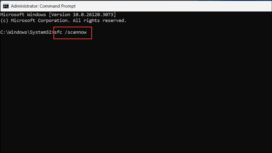 This command scans for and repairs corrupted system files. Wait for the process to finish; if issues are found, SFC attempts to fix them automatically.