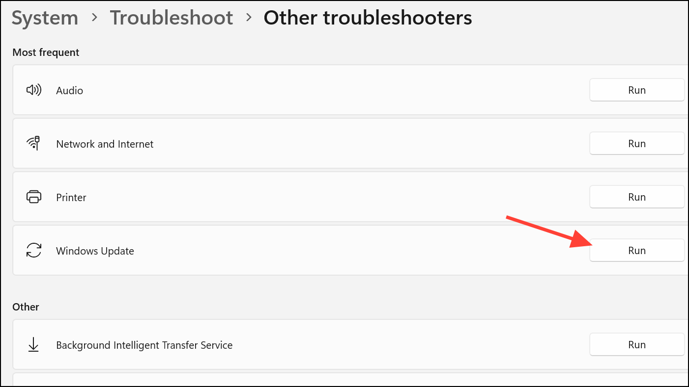 Step 3: Find Windows Update and click Run or Run the troubleshooter. Follow the on-screen instructions. If prompted, apply any suggested fixes and restart your computer.