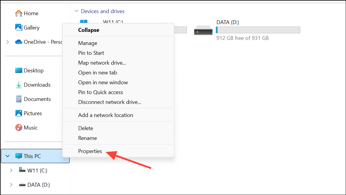 Step 1: Open File Explorer, right-click This PC, and select Properties.
