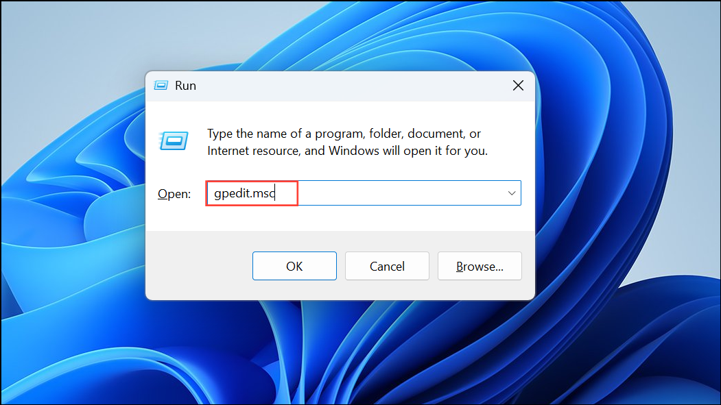 Step 3: Open the Group Policy Editor by typing gpedit.msc in the Run Console.