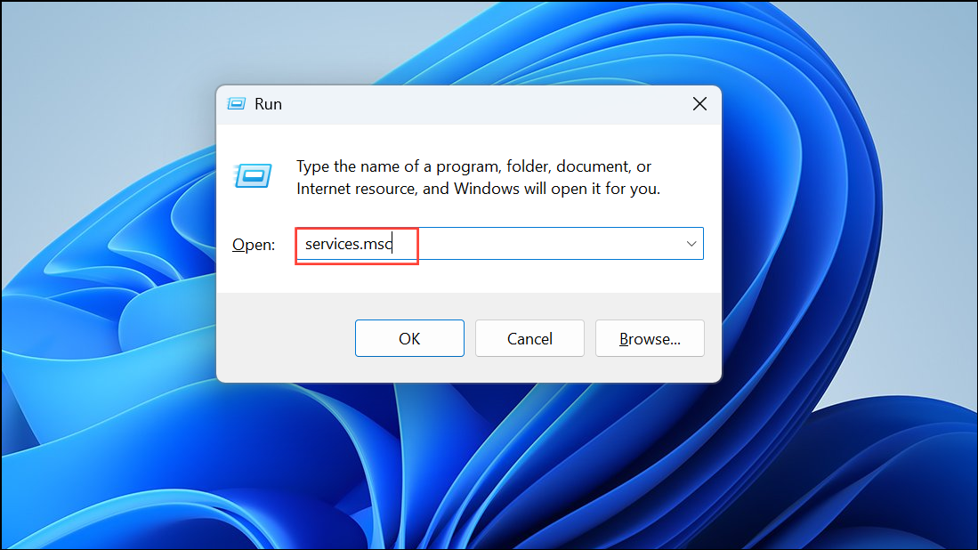 Step 1: Press Windows + R to open the Run dialog, type services.msc, and press Enter. This opens the Services management console.