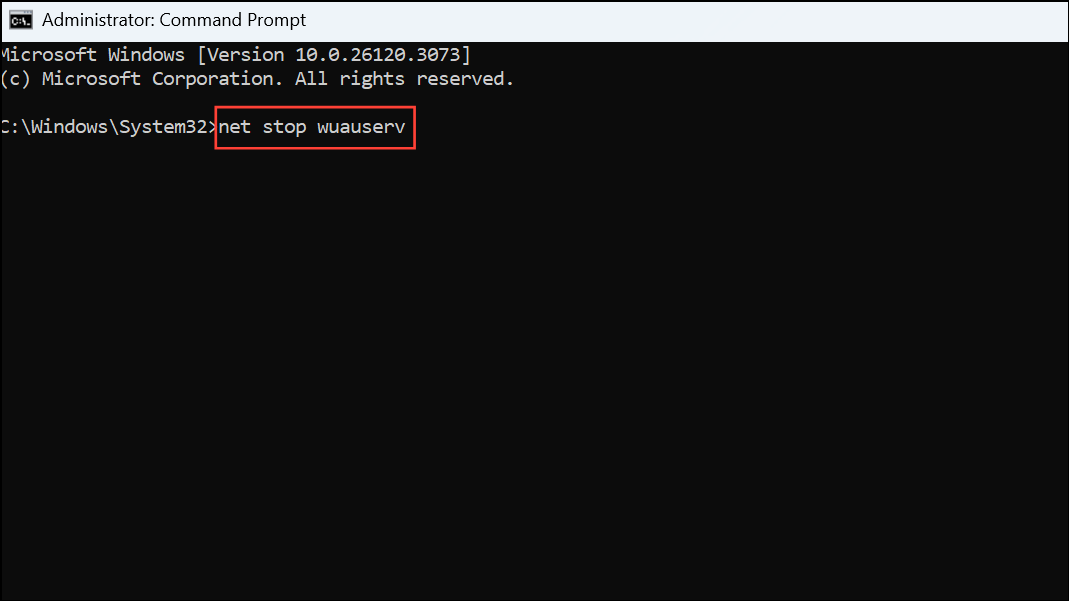 Step 2: Stop essential update services to unlock the SoftwareDistribution folder. Enter the following commands one by one, pressing Enter after each: