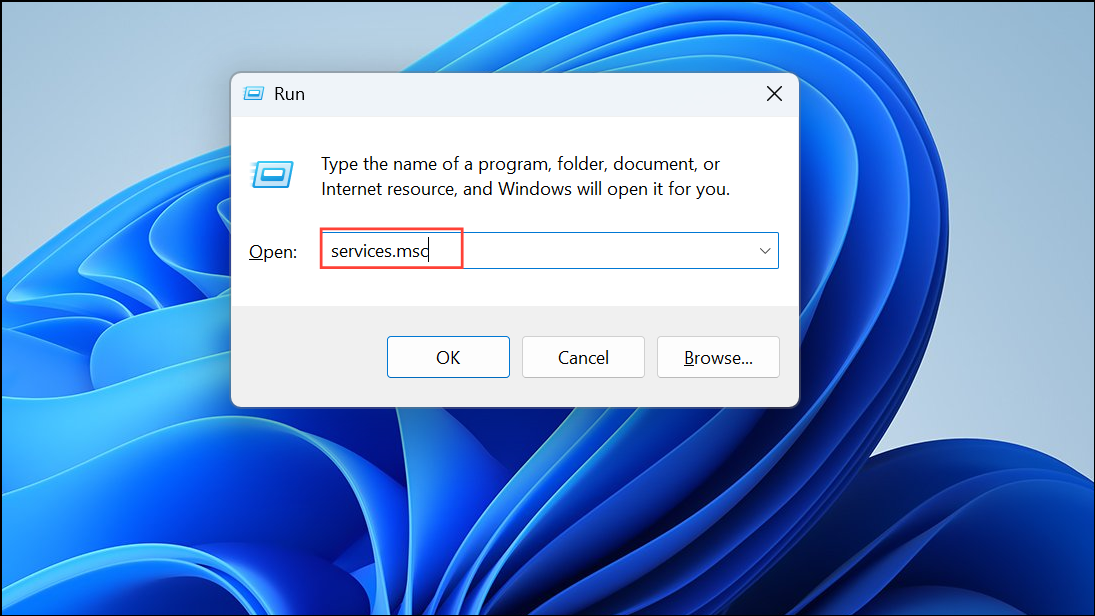 Step 1: Press Windows + R, type services.msc, and press Enter to open the Services console.
