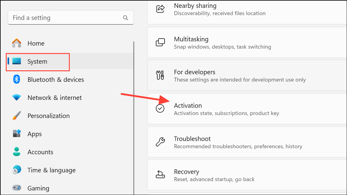 Step 1: Open the Windows Settings menu by pressing Windows + I on your keyboard. Select System and then choose Activation from the sidebar.