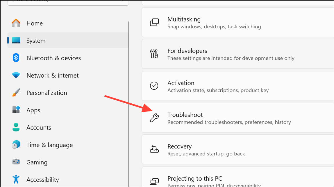Step 2: On the Activation page, look for a Troubleshoot button. Click it to launch the Activation Troubleshooter. This tool scans for activation problems and attempts to resolve them automatically. If you don't find the Troubleshoot option within the Activation setting, try looking for it in the main System page.