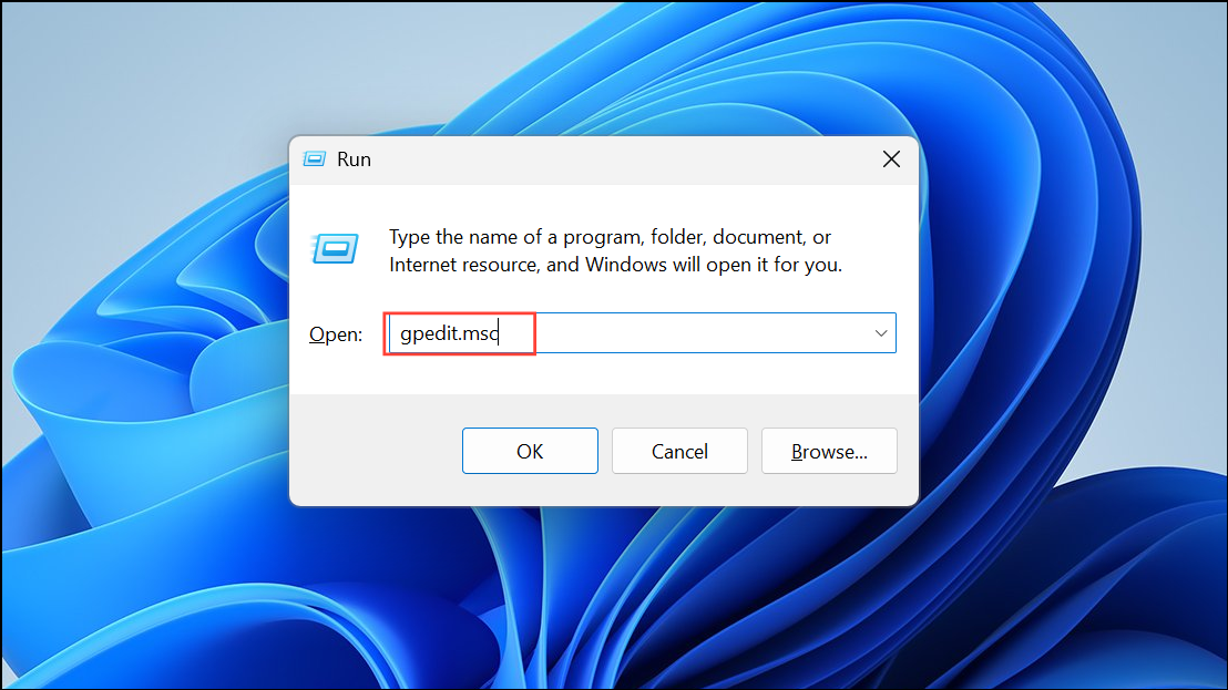 Step 1: Open the Run dialogue using the Win + R shortcut, typegpedit.msc (Group Policy Editor), and press Enter.