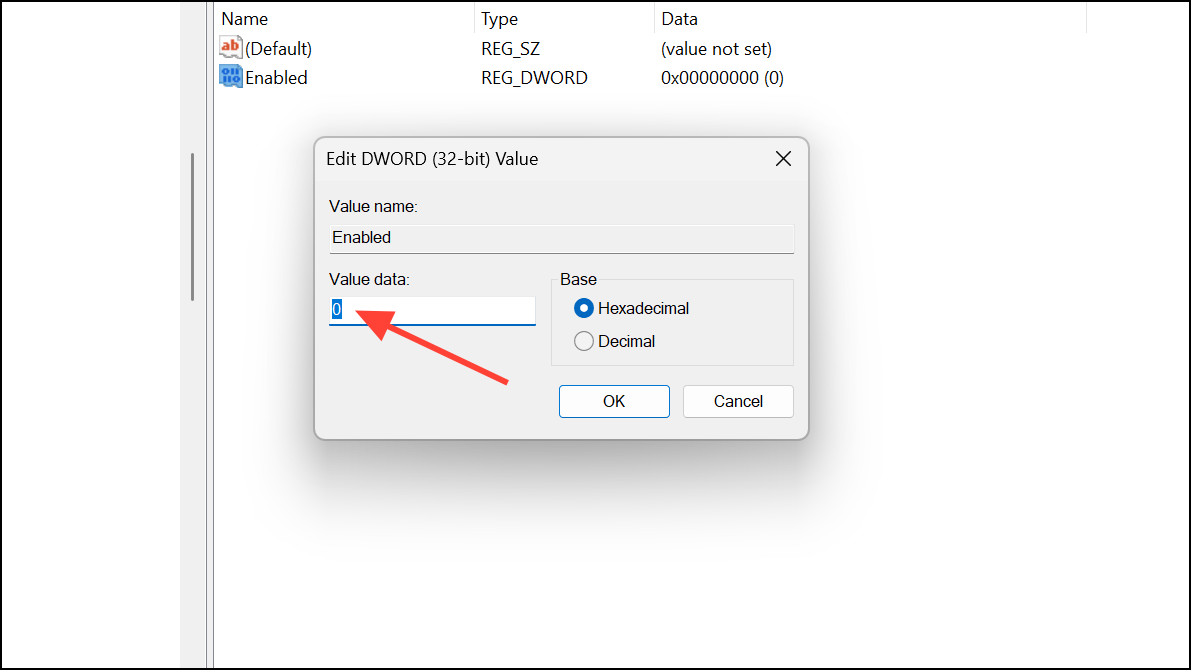 Step 5: Set the Enabled DWORD value to 0 (or create it if missing). Restart for changes to take effect.