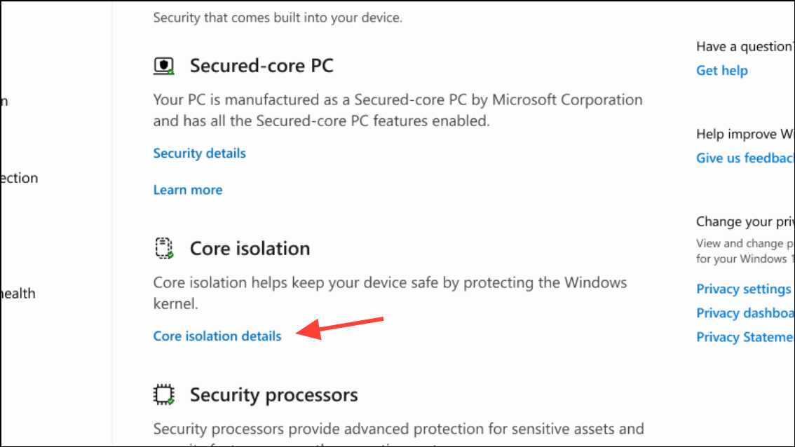 Step 6: To verify firmware protection status, check the same registry path or open Windows Security > Device Security and review the Core Isolation or Firmware Protection section.