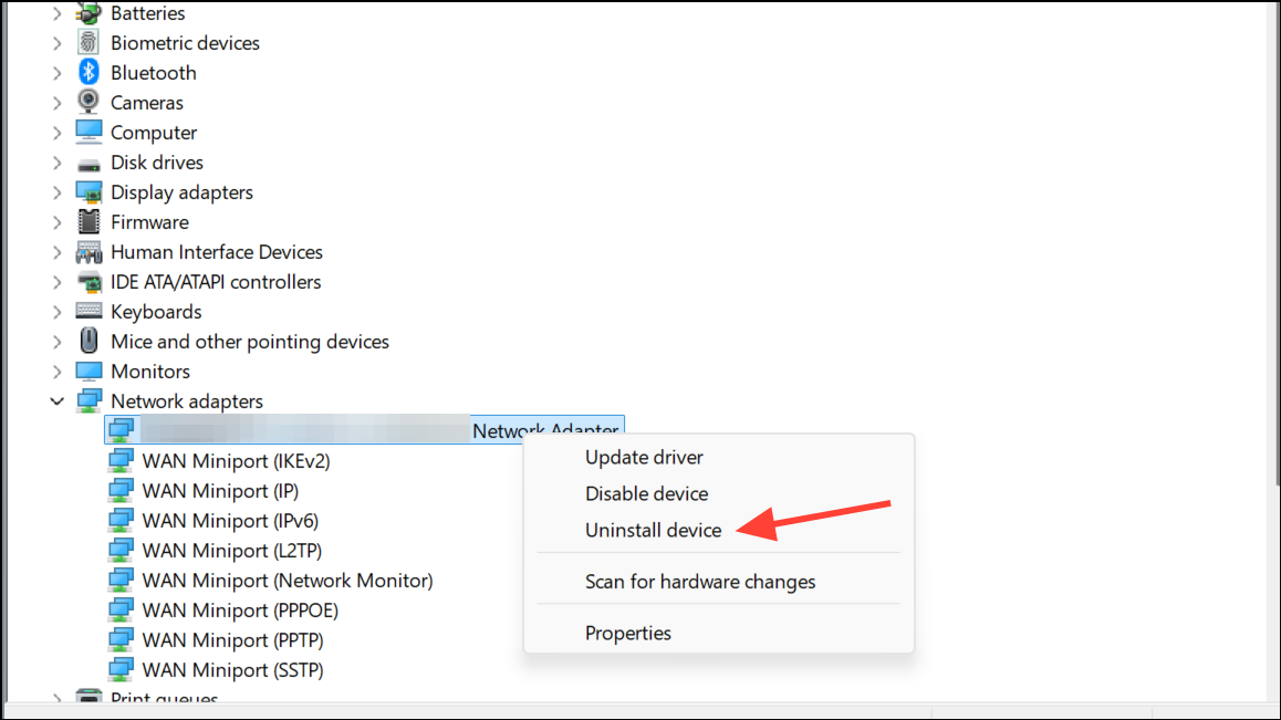 Step 5: If updating does not resolve the issue, right-click the Ethernet adapter in Device Manager and choose Uninstall device, check Attempt to remove the driver for this device, and restart your PC. Windows will attempt to reinstall the driver. If the PC cannot access the internet, download the driver on another device and transfer it via USB.