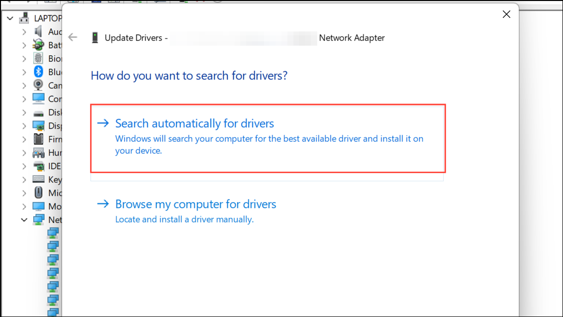 Step 3: Select Search automatically for drivers to let Windows find updates.
