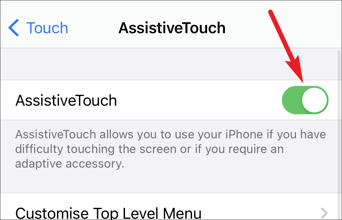 Now, enable the toggle for AssistiveTouch.