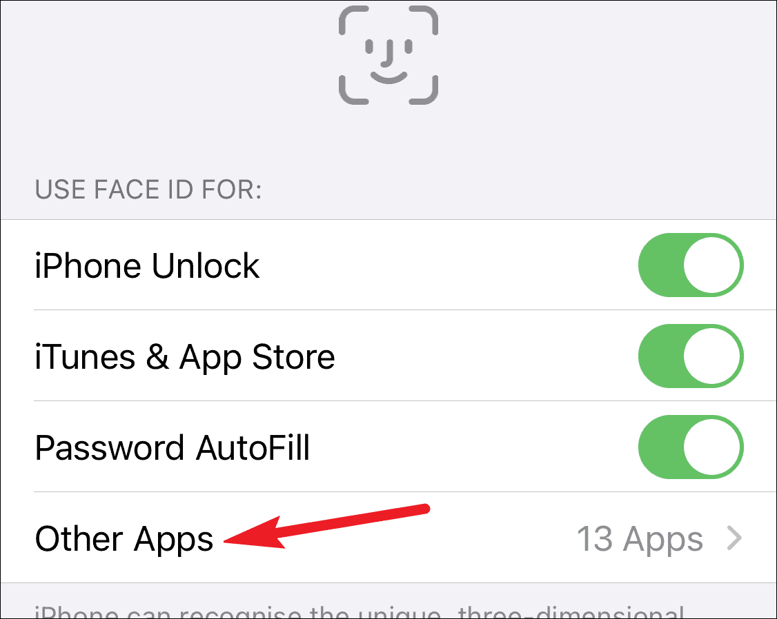 The list of all the apps using Face ID will open. Turn off the toggle for the app for which Face ID is being problematic.