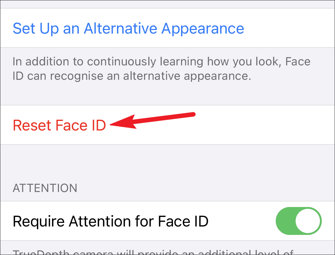 If nothing else worked for you, it’s time to reset your Face ID. Resetting it and setting it up again can help solve the problem. Open the Face ID & Passcode settings and then tap on ‘Reset Face ID’.