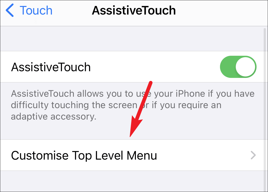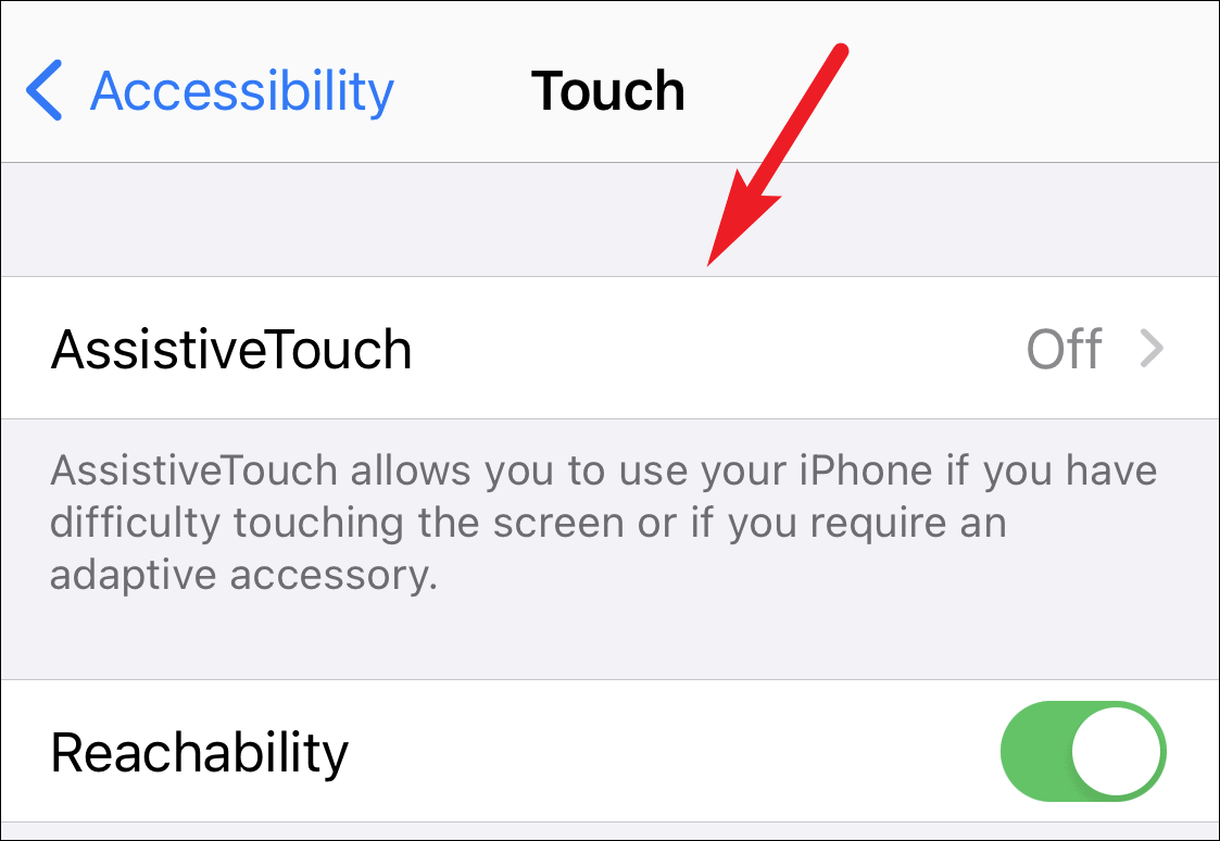 Tap on ‘AssistiveTouch’ to open the settings for it.