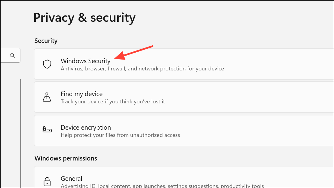 Step 1: Open Windows Security from Settings > Privacy & security or by searching for "Windows Security".