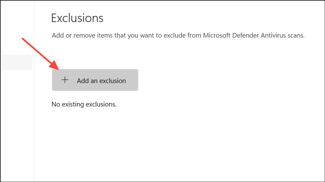Step 4: Use + Add an exclusion to select the specific folder or drive that causes lag. This prevents Defender from scanning every file on access, dramatically reducing wait times when opening large folders.