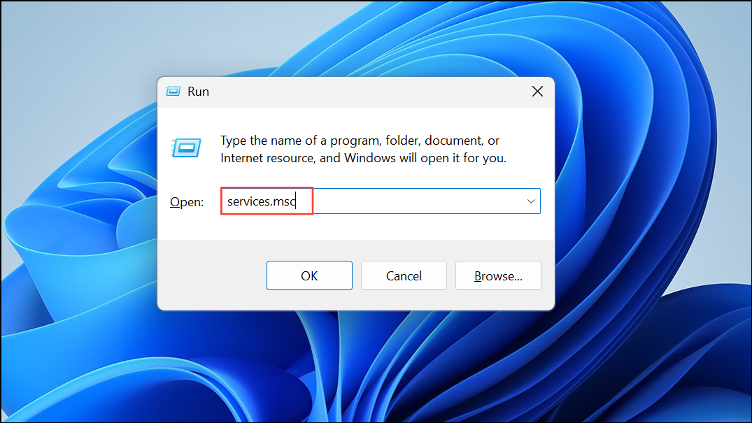 Step 1: Press WIN+R, type services.msc, and press Enter.