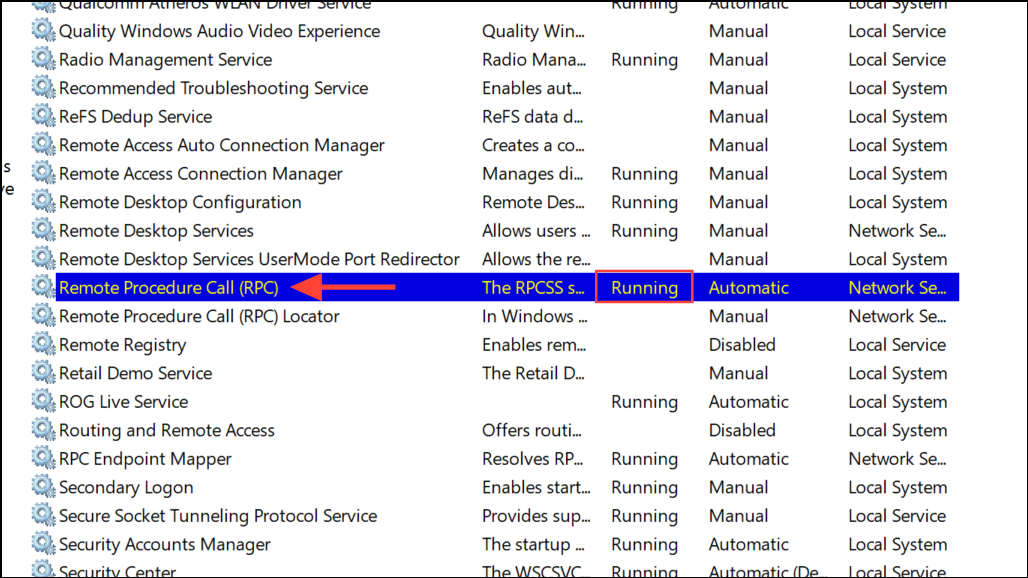 Step 4: Confirm that Background Task Infrastructure Service and Remote Procedure Call (RPC) are also running, as these are dependencies.
