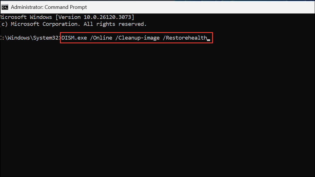 This checks for and repairs corrupted system files. Reboot your computer after both commands finish.