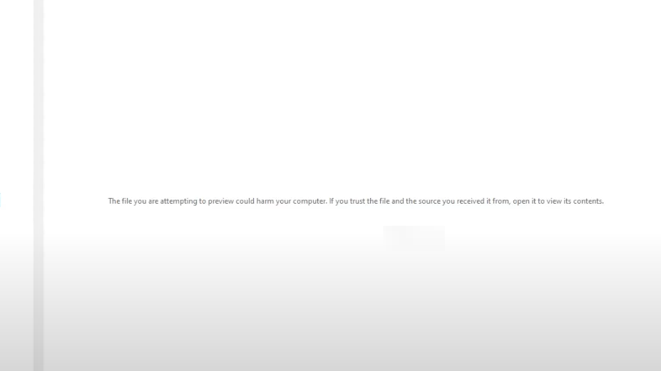 “The file you are attempting to preview could harm your computer. If you trust the file and the source you received it from, open it to view its contents.”