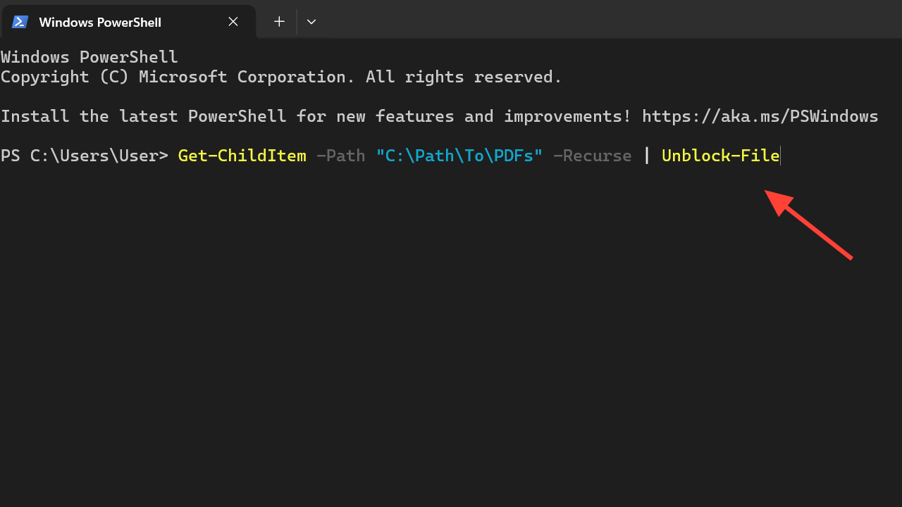 Get-ChildItem -Path "C:\Path\To\PDFs" -Recurse | Unblock-File