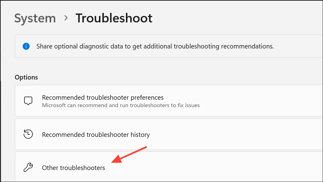 Step 2: Click Other troubleshooters.