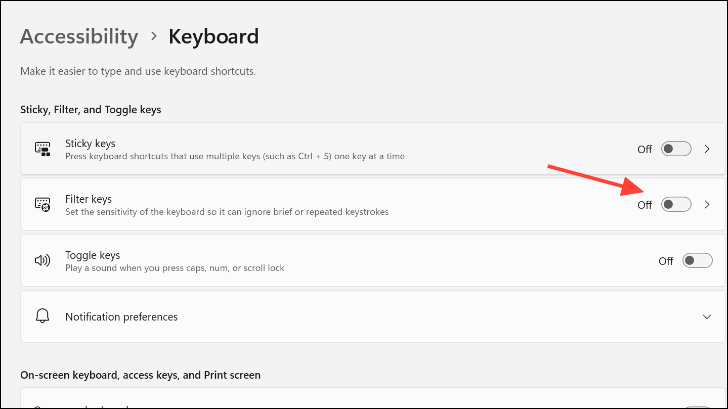 Step 2: Locate the Filter keys toggle and turn it off.