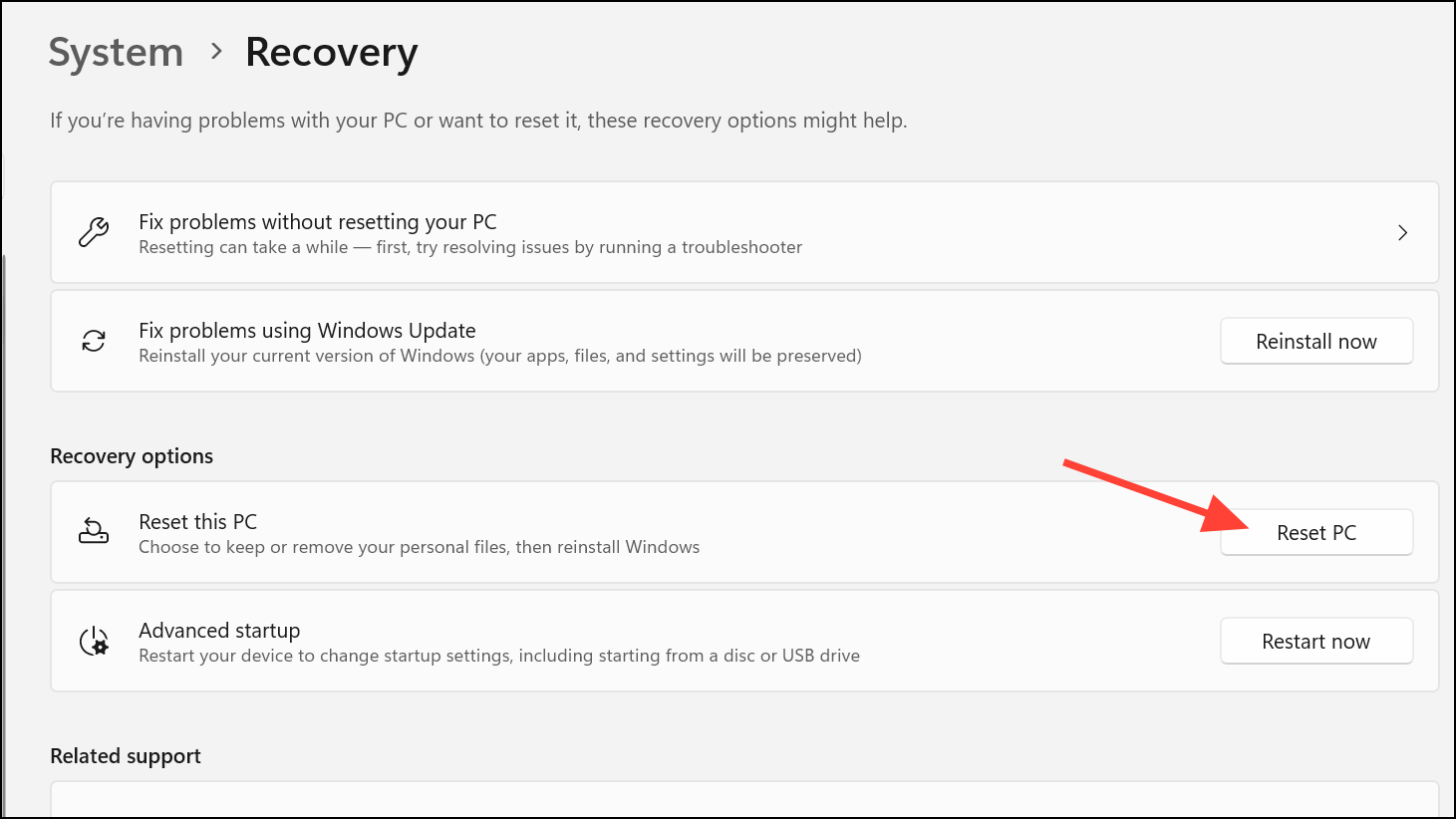 Step 1: Open Settings (Win + I) and go to System > Recovery.