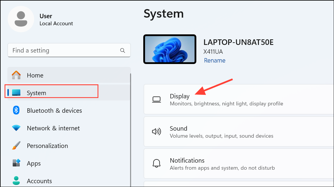 Step 1: Lower the monitor refresh rate via Windows Display Settings. Open Settings > System > Display.