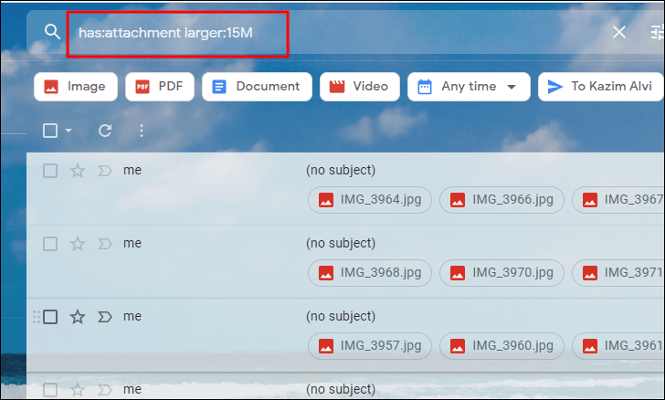 To find such mails, enter the following in the ‘Search Bar’ and press ENTER.