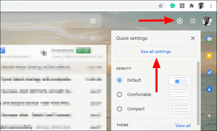 To check if you have set any filters, click on the ‘Settings’ icon near the top-right corner of Gmail, and then select ‘See all settings’ from the drop-down menu.