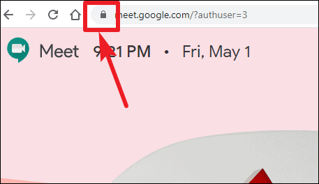 Go to meet.google.com and click on the ‘Lock’ icon on the left side of the site name on the Address Bar.