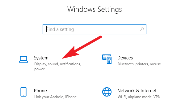 You can also open the ‘Settings’ from the Start menu, then go to ‘System’ settings.