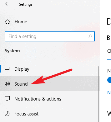 From the navigation menu on right, select ‘Sound’.
