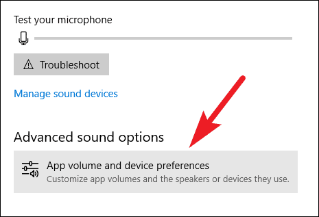 Once the sound settings are open, scroll down to find ‘Advanced Sound options’ and click on ‘App volume and device preferences’.