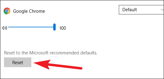In the App volume and device preferences, scroll down and click on the ‘Reset’ button to reset the microphone to Microsoft recommended defaults.