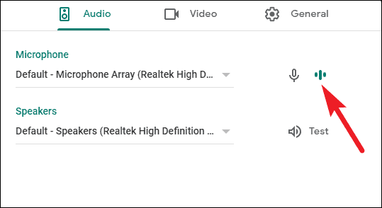 A dialog box will open. See that the correct microphone is selected and try speaking something. When the microphone is working, the three dots next to the microphone will change into lines to show that it detects sound.