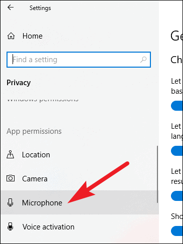 Scroll down in the navigation menu on the left and choose ‘Microphone’ from the App Permissions section.