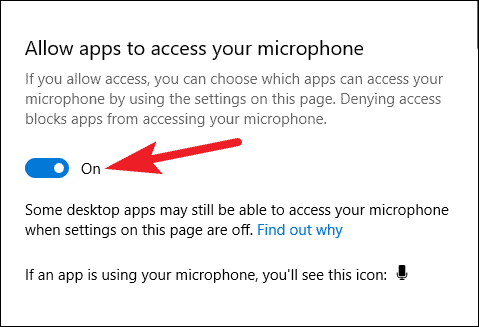 Now, make sure that the toggle for ‘Allow Apps to access your Microphone’ is also on. If it isn’t, click on it to turn it on.